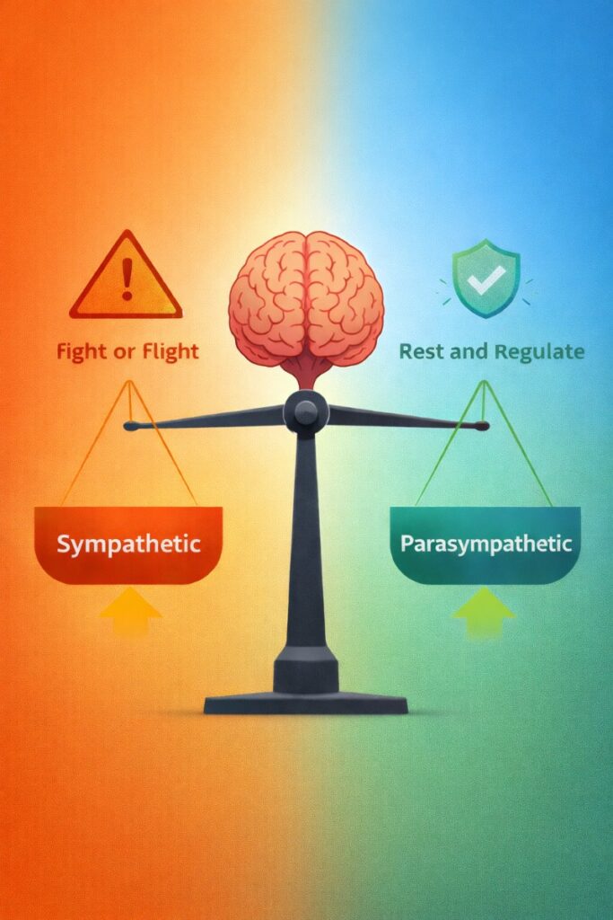 The parasympathetic nervous system is your “rest and regulate” system. It restores calm, supports recovery, and creates the sense of safety the thinking brain requires.